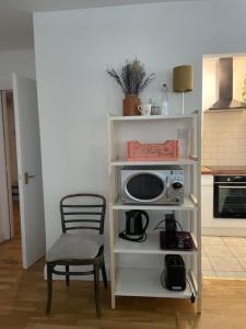 L’appartamento è caratterizzato da una cucina ben attrezzata con piano cottura, forno, lavastoviglie, frigorifero e utensili per la preparazione dei pasti. L’area living presenta pavimenti in parquet e include un angolo salotto con TV a schermo piatto. Le due camere da letto si affacciano su una via tranquilla e sono dotate di pavimenti moquettati, il bagno dispone sia di vasca che di doccia. Completano la proposta una lavatrice e una macchina per il caffè.
